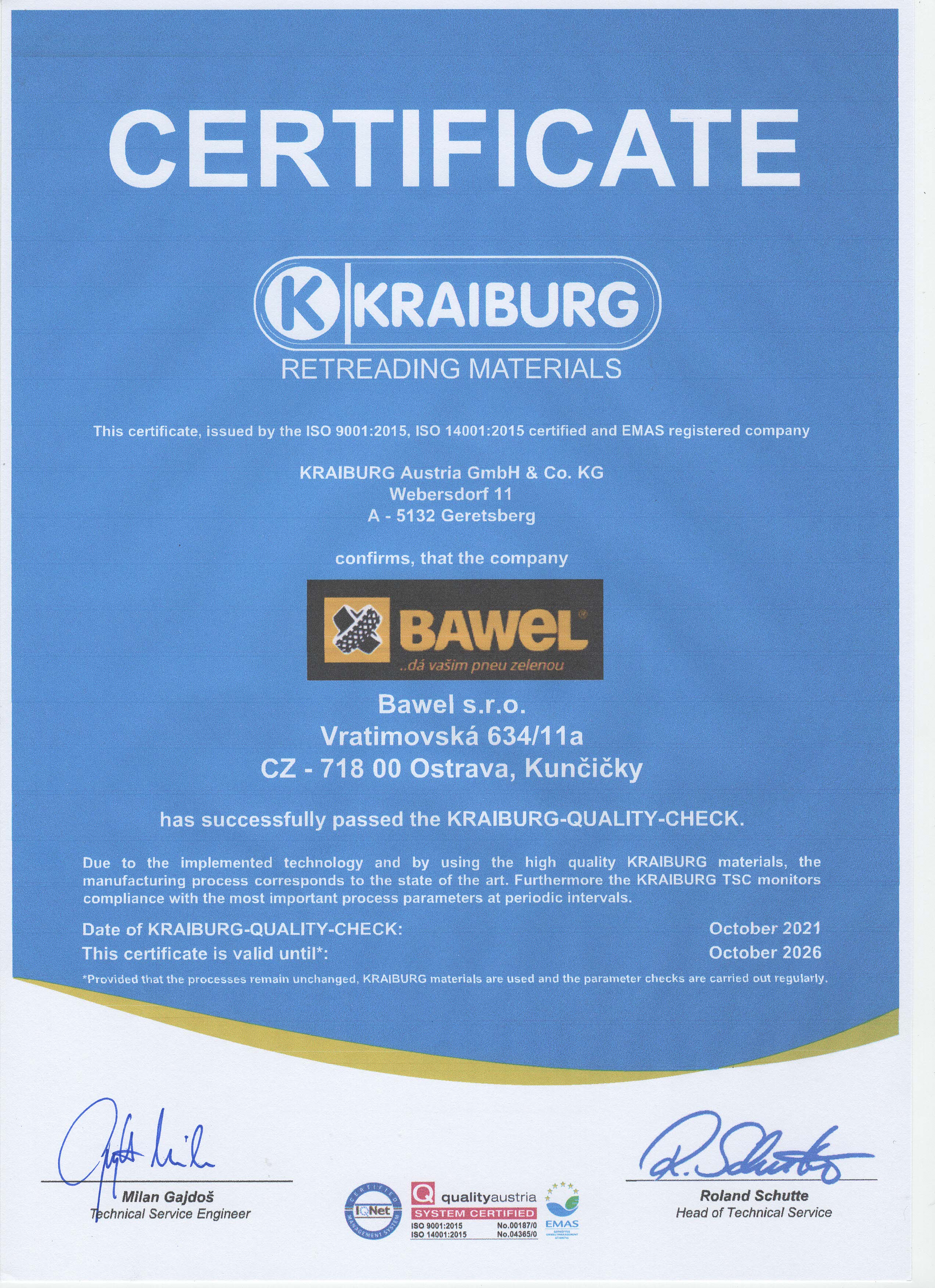 Společnost BAWEL pravidelně úspěšně prochází certifikacemi výroby jak dodavatelů protektorovacích materiálů, tak státních orgánů. V tomto článku najdete většinu aktuálně platných certifikátů.