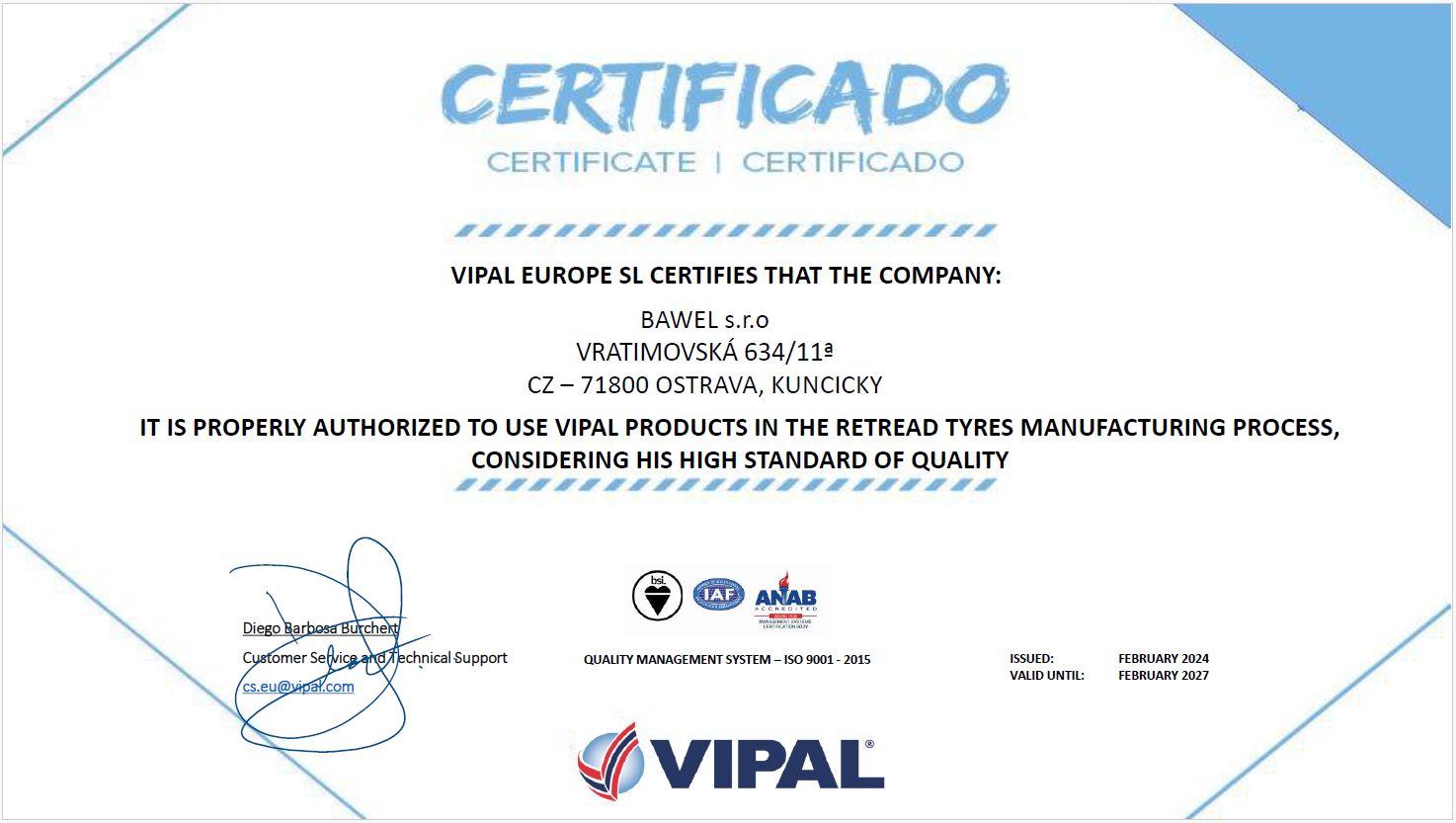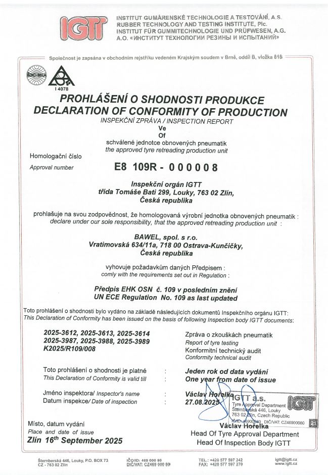 Společnost BAWEL pravidelně úspěšně prochází certifikacemi výroby jak dodavatelů protektorovacích materiálů, tak státních orgánů. V tomto článku najdete většinu aktuálně platných certifikátů.